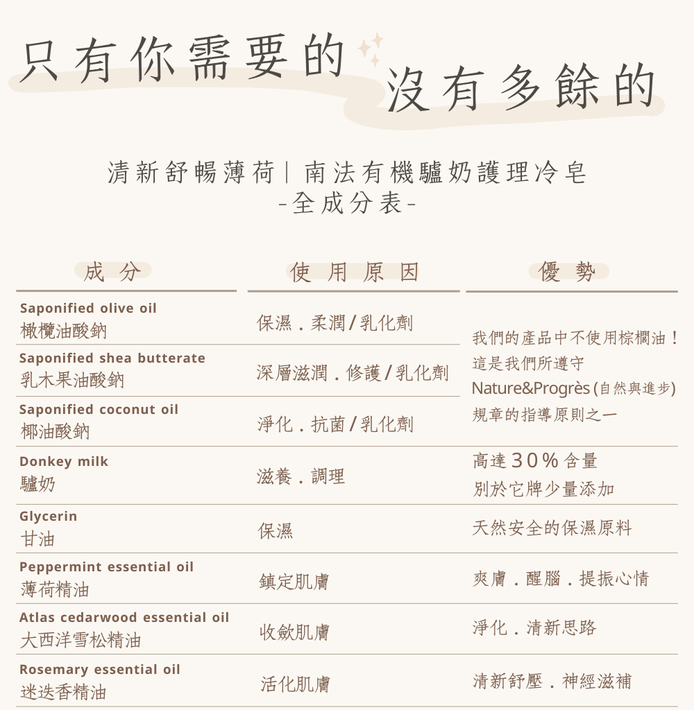 主要功效:緩和燥熱騷癢肌膚、舒爽身心