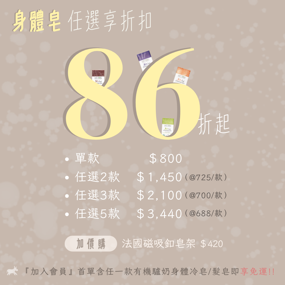 【任選享折扣】驢奶護理冷皂任選最低86折!!