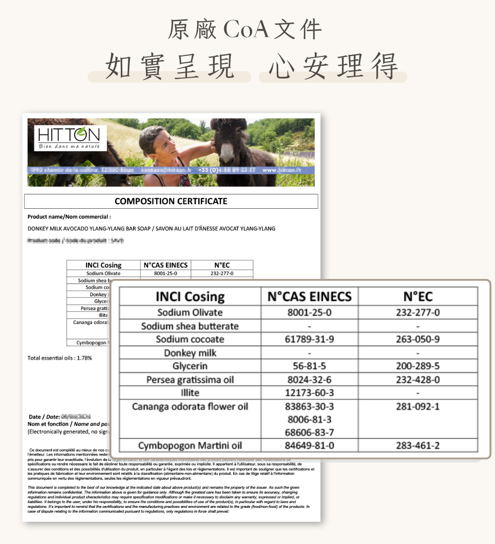 香水樹和玫瑰草精油,混入30%有機驢奶與高度潤