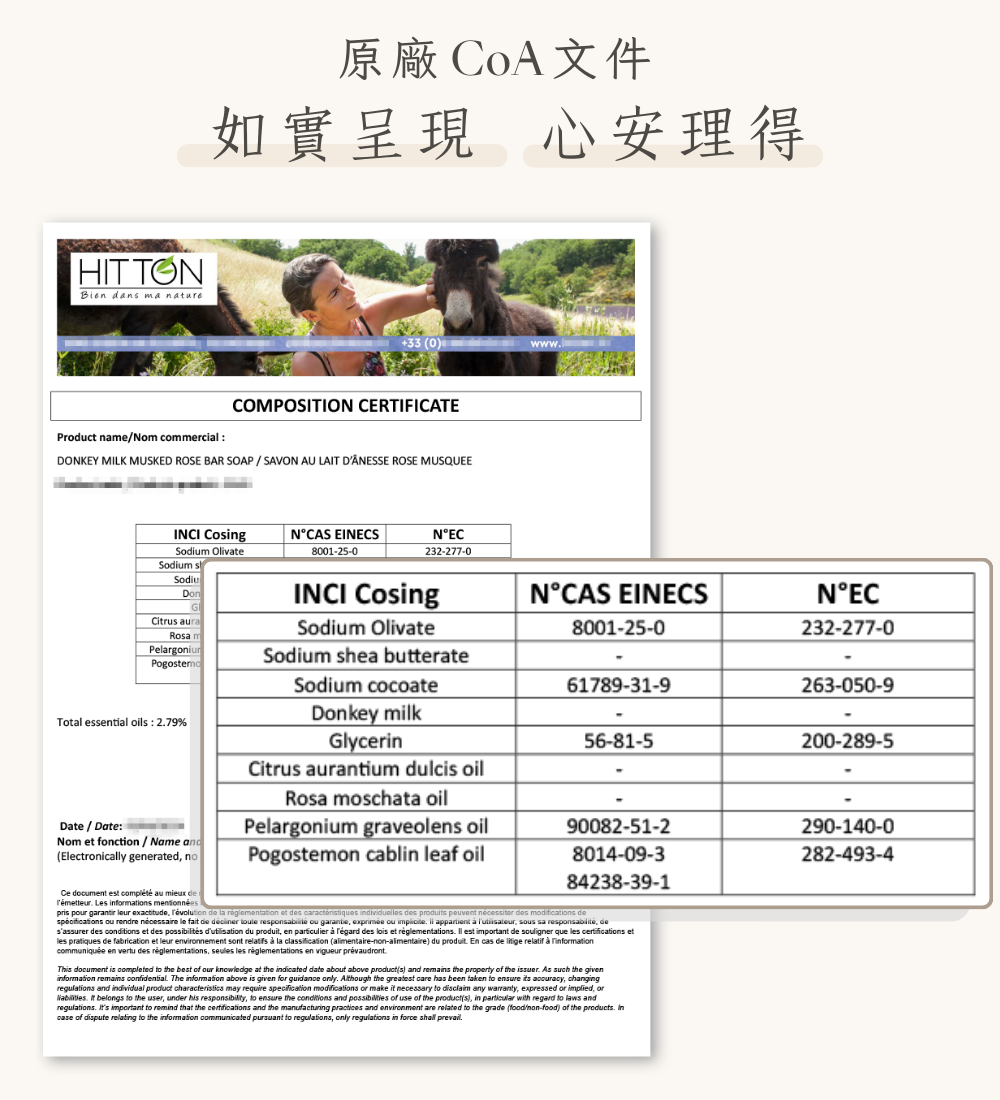 波旁天竺葵和廣藿香精油混入30%有機驢奶,與具皮膚